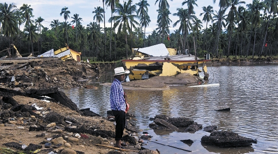 9月21日,在墨西哥格雷罗州科尤卡-德贝尼特斯,一名男子在岸边等待过河船只。墨西哥内政部长奥索里奥20日说,大西洋飓风“英格丽德”和太平洋热带风暴“曼努埃尔”在墨西哥造成的死亡人数上升至101人,另有68人失踪,上百万人受灾。 新华社发 |