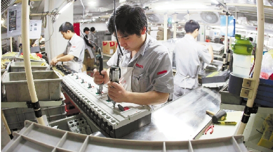 由于订单接连不断,德力西工人在生产线忙碌不停。温州日报记者 陈翔 摄