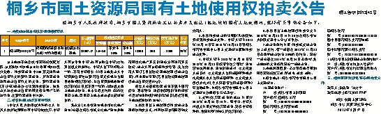 经桐乡市人民政府批准,桐乡市国土资源局决定以拍卖方式出让1幅地块的国有土地使用权,现将有关事项公告如下: