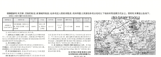 根据国家有关法律、法规的规定,依据城市规划,经余杭区人民政府批准,杭州市国土资源局余杭分局对以下地块采用挂牌方式出让。现将有关事宜公告如下: