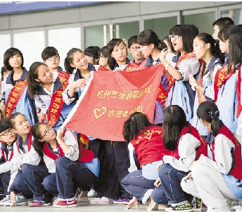 9月30日,杭州火车东站,学生志愿者各就各位,准备在国庆长假客流高峰期间为游客助上一臂之力。