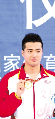 吴鹏(左)、徐东香(右)在第十二届全运会游泳和赛艇项目的领奖台上。 新华社发