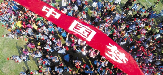 9月30日,淳安县威坪镇中学,800多名学生在校园晒出自己的梦想,喜迎国庆。 本报记者 胡元勇 钱璐斌 通讯员 徐丽 摄