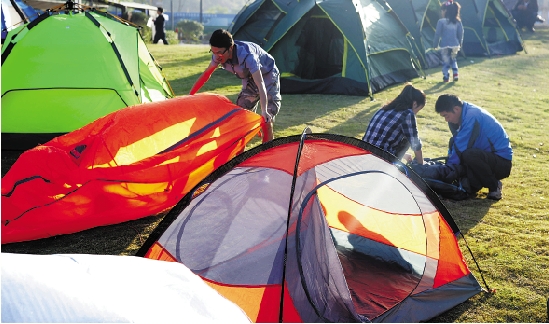 10月4日早上,各地驴友在千岛湖的半岛营地露营。他们和星而眠,迎日而醒,让身心与大自然融合。