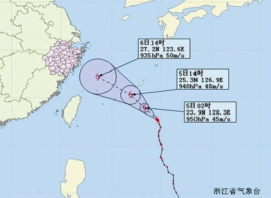 省气象台10月4日发布“菲特”未来48小时路径概率预报图