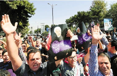 9月28日,伊朗总统鲁哈尼参加完联合国大会后从美国纽约返回国内,支持者在德黑兰机场欢迎他回国。 新华社发