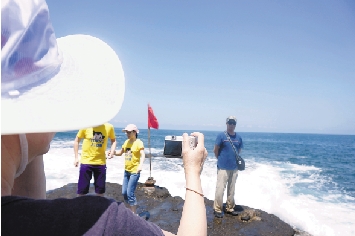 游客在巴厘岛海神庙附近留影。 张丽 摄