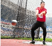 10月7日,在东亚运动会男子链球项目比赛中,中国选手万勇以69米26的成绩获得冠军。 新华社发