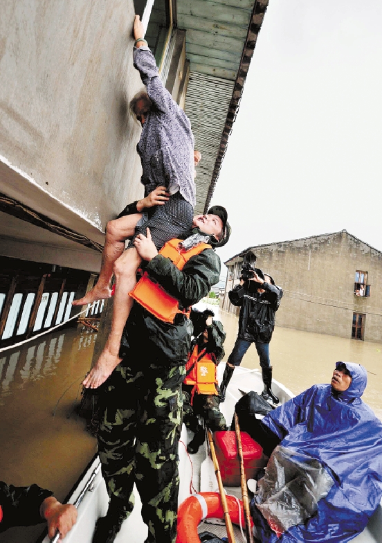 10月7日,武警在瑞安市陶山镇营救被困群众。 郭广杰 摄