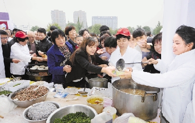 | 10月18日,武义县在有800年历史的熟溪廊桥边举办“廊桥喜乐汇”,数千名市民和游客来此品尝地方特色美食、观看烹饪擂台大赛。图为市民免费领取地方特色小吃“荸荠羹”。 记者 徐晓恩 县委报道组 朱跃军 温君凯 摄 |