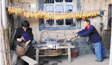 @一点红:见到我们来,曾老伯和老伴说要给我们做豆浆,这不还没等我们点头答应,夫妻俩就忙开了。看看,这是用石磨磨出的豆浆,上面还挂着一串老玉米,乡村生活挺有情调。