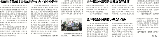 针对当前小微企业融资难问题,金华银行从该类企业融资“短、小、频、快”的特点出发,及时研究小微企业在发展过程中遇到的新情况新问题,为企业量身打造了各类金融产品。