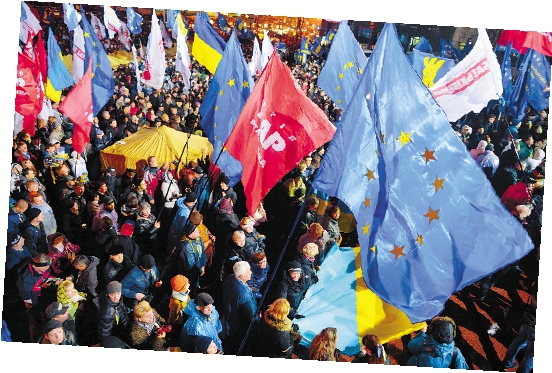 11月25日,在乌克兰首都基辅,示威者聚集在欧洲广场上。 新华社发