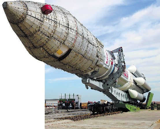 2013年9月26日,哈萨克斯坦拜科努尔航天发射场,正在为发射做准备的俄罗斯“质子”号火箭。 视野网供图