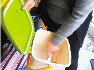 图④:厨余垃圾堆肥桶内侧。 夏丹 摄