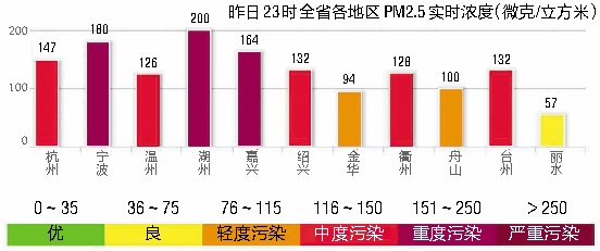昨日23时全省各地区PM2.5实时浓度(微克/立方米)