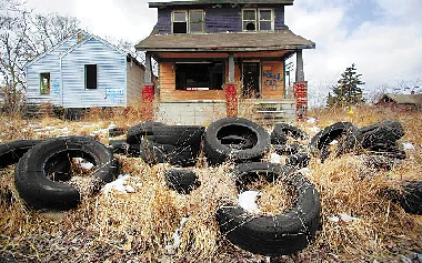 图为底特律布什园区被废弃的房屋,摄于今年3月3日。 视野网供图