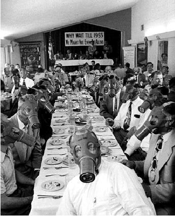 《生活》杂志在1954年拍摄的一张洛杉矶市民集会呼吁尽快立法的照片,白板上写着“为什么要等到1955年,也许那时我们已不在人世”。