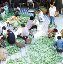 农民们对刚采摘下来的高山蔬菜进行包装。在遂昌县高坪乡高坪新村,家家户户一片繁忙景象,农民们忙着将采摘回来的高山蔬菜进行包装。据了解,今年该乡高山蔬菜种植面积达3500多亩,带动农户1000余户,产值近2000万元。