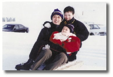 8岁。程浩第一次和家人去石河子南山滑雪,不能自己坐,所以爸爸抱着他玩爬犁子,那天他玩得好开心。