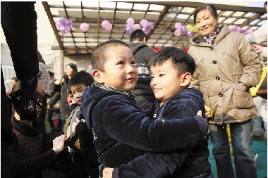 12月13日,杭州西湖区名苑幼儿园举行“爱的行动,爱的抱抱”首届拥抱节,让孩子们学会拥抱,增加友谊。 本报记者 魏志阳 摄