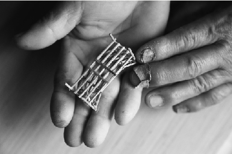 吴复勇的家里,摆满了大大小小的各种各样的廊桥模型。这是他正在制作的最小的一个廊桥模型。
