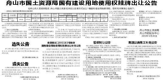 舟山市国土资源局国有建设用地使用权挂牌出让公告