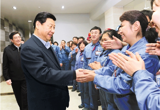 12月28日,中共中央总书记、国家主席、中央军委主席习近平在北京看望一线职工和老年群众。这是习近平与北京京桥热电有限公司当班职工一一握手。 新华社记者 饶爱民 摄