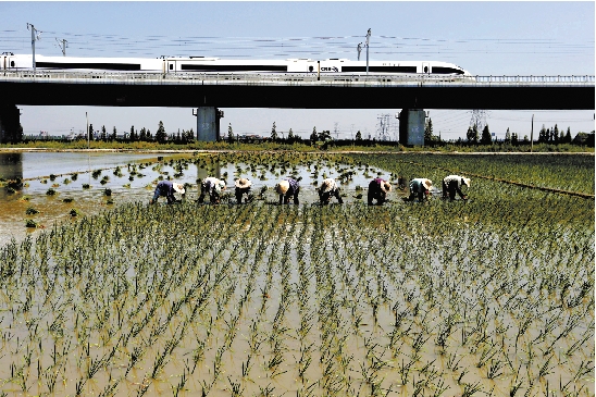 烈日当空,绍兴农民抢插连作稻(二等奖) 储永志 高洁 摄