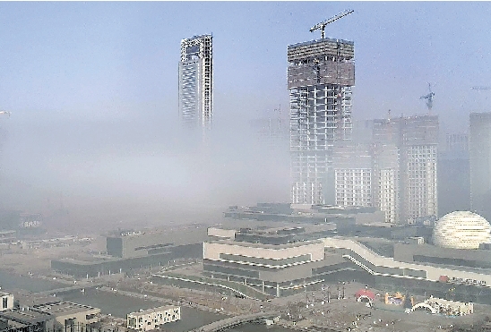 1月6日,浓厚雾霾笼罩宁波东部新城。 胡学军 刘晓庆 摄