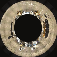 图②地形地貌相机拍摄的着陆器周边360°范围的全景镶嵌影像图,采用方位投影方式表达(2013年12月17日至12月18日摄)。