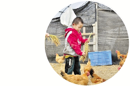 新割的稻谷喂鸡了。