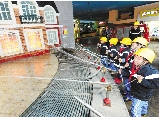 杭州采荷一小学生参加灭火游戏。本报记者 叶寒青 通讯员 柳彬杨 摄