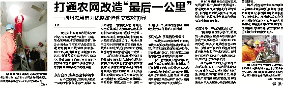 由于历史原因,农用电力线路一直属于村级集体资产,面临“电力不好管”、“村委无力管”的困境,以致设施落后、管理薄弱,被称为农村电网改造的“最后一公里”。2013年2月,全省启动农村农用电力线路改造移交工作。湖州计划用三年时间新建和改造农用电力线路9195公里,台区9092个,彻底打通农村电网建设“最后一公里”。