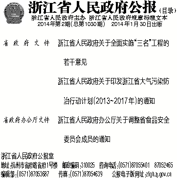 编辑部:(0571)87053687 传真:(0571)87054639 公报电子版网址:zfgb.zj.gov.cn