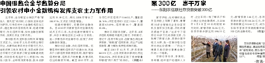 近年来,金华银监分局在严格“管法人、管风险”的同时,以服务实体经济为原则,引导农村中小金融机构定位三农,通过推动农信机构改革、组建村镇银行、优化信用环境、加快金融创新等手段,发挥支农主力军作用。