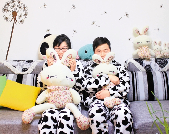 吴晔和老公摆出的“二孩之家”造型,生动、有趣且温馨。记者 史朵朵 摄