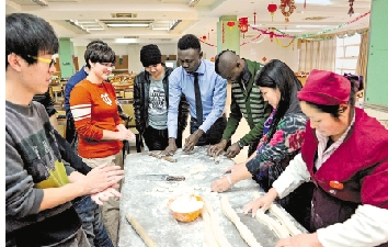 除夕夜,杭州电子科技大学下沙校区40多名留校学生聚在一起包饺子、拉家常,吃团圆饭,喜迎新春。学校还精心筹备了“暖冬情·中国梦”寒假留校学生文化过年系列活动。 记者 王婷 通讯员 廖梅杰 叶璟 摄