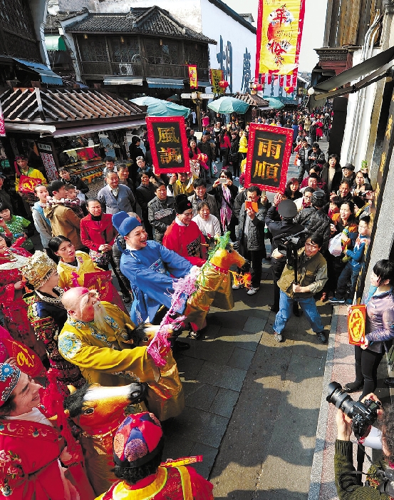 2月1日,杭州河坊街和南宋御街上演了精彩的“龙马精神众祈福”民俗文化活动。 徐晖 摄
