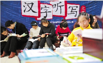 2月1日,临海市新华书店,家长们带着孩子读书过节。 王华斌 摄