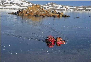 2月1日,黄河艇正在将长城站的垃圾运回“雪龙”号。