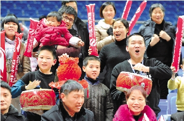 大年初五,义乌迎来年后首场CBA比赛,市民前来喝彩助威。 记者 潘良干 摄