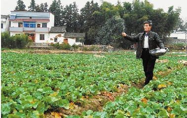 立春,建德市大同镇黄家村老汉黄树根来到田间施肥。 宁文武 摄