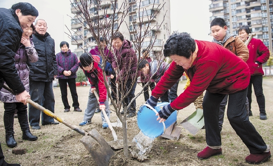 2月4日,杭州市望江街道婺江社区组织10多户家庭,来到小区中心公园植树,美化家园,播撒春天的希望。 李震宇 严琰 摄