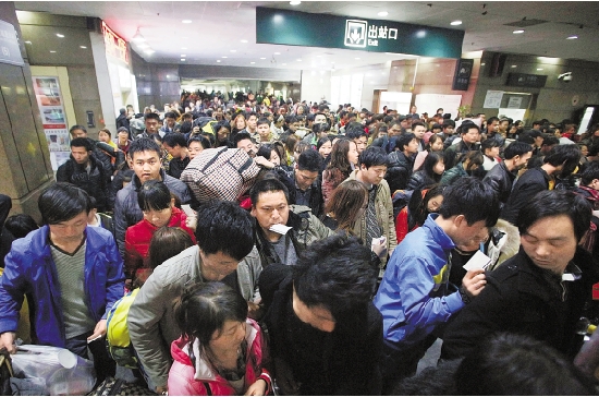 2月4日,杭州火车站,贵阳开往杭州的一趟列车到站后,千余旅客蜂拥走向出站口,其中绝大部分是民工兄弟,春运返程高峰渐显。 本报记者 朱卫国 摄