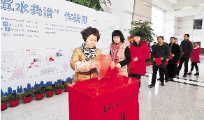 2月7日,在海宁行政中心大厅,100多名机关单位代表和企业代表为“五水共治”捐款。