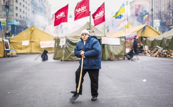 当地时间2014年2月8日,乌克兰基辅,反政府示威持续。 视野网供图
