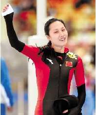 2月13日,中国选手张虹庆祝胜利。 新华社记者 王昊飞 摄