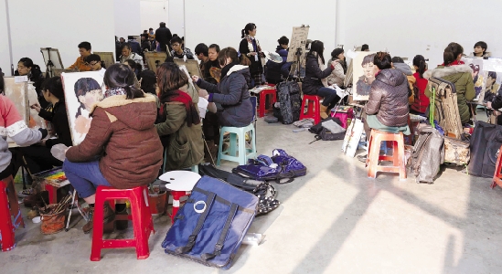 2月15日,为期3天的中国美院2014本科招生艺术考试在全国六大考点开考,共有7.75万人参加考试。图为在中国美院象山校区,考生在认真画画。