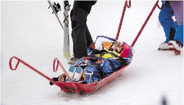 2月21日,索契冬奥会自由式滑雪女子障碍追逐项目的决赛险象环生。图为智利选手斯蒂芬妮·乔弗瑞在比赛中受伤。 新华社发